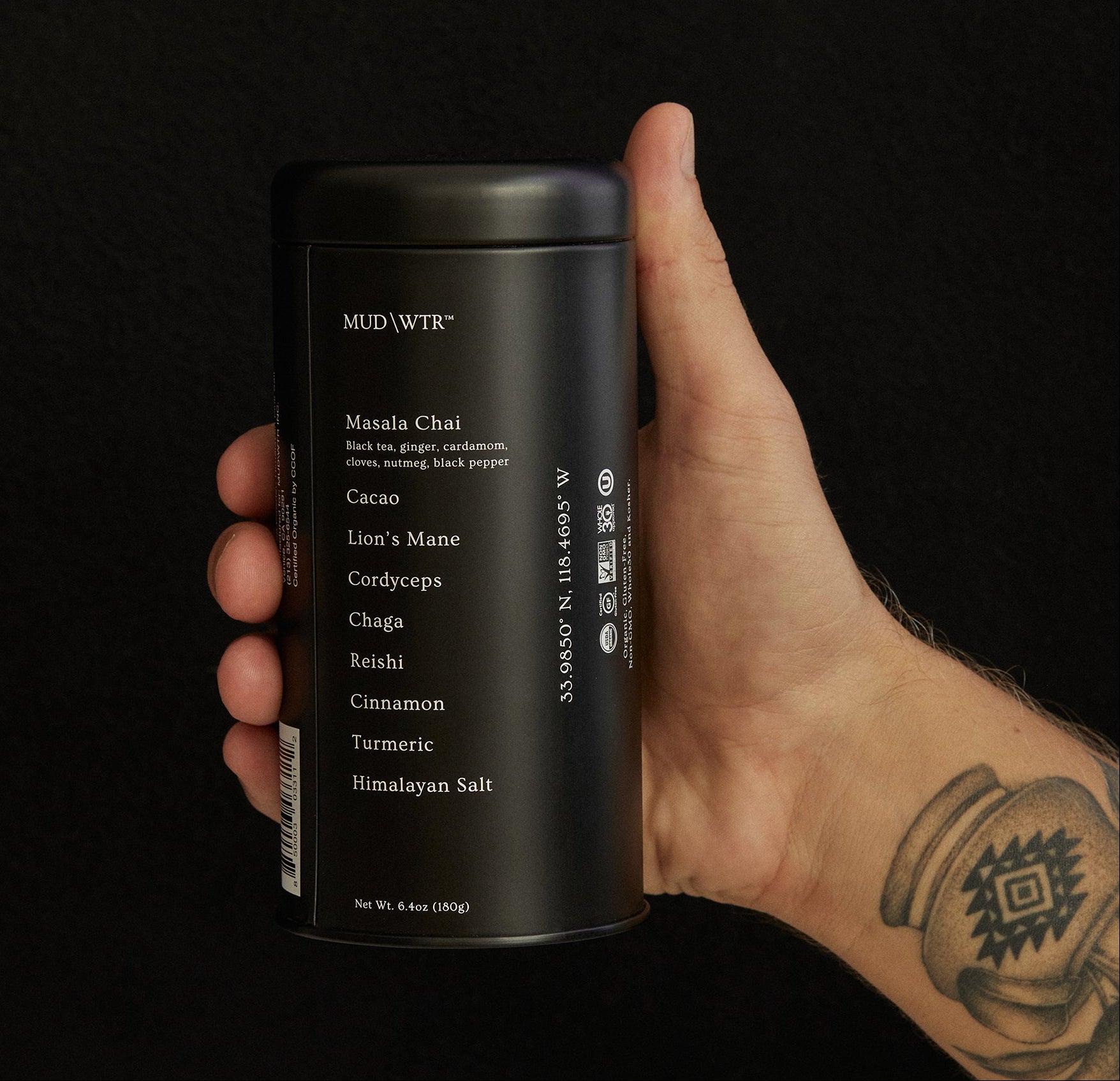 - Other Ingredients: Organic Mushroom Blend (Chaga, Reishi, Lion's Mane and Cordyceps Mushrooms and Mycelium cultured on Organic Oats and/or Organic Sorghum), Organic Cacao, Organic Spice Blend (Organic Cinnamon, Organic Turmeric, Organic Ginger, Organic Cardamom, Organic Black Pepper, Organic Nutmeg, Organic Cloves), Organic Black Tea Powder, Himalayan Pink Salt