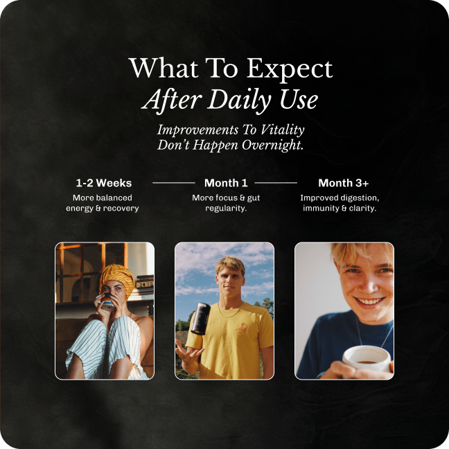 Morning for energy blends. Anytime for the protein. Evening for Hot Chocolate, Turmeric or Rest. Drink the one that matches how you want to feel.