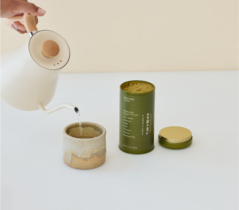 Matcha has a complex, nutty flavor, with hints of sweetness and an earthy undertone. Our :rise Matcha blend is further augmented by the cinnamon, turmeric and warming spices in the chai. If you're already familiar with matcha, we think you'll enjoy our muddy spin on it. But if you're more familiar with a fancy matcha latte, you'll want to add a little :creamer and :sweetener to start.