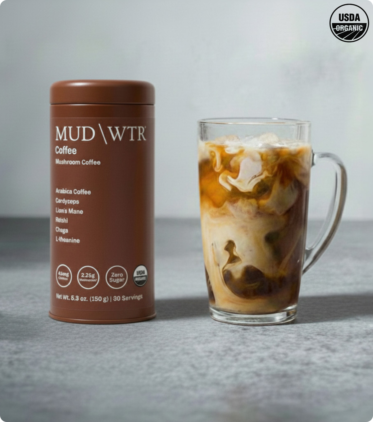 Most mushroom coffees are just regular coffee with a mushroom dusting—not enough to matter, and still packed with caffeine and pesticides. MUD\WTR has no coffee at all. Just masala chai, cacao, turmeric, and 2,240mg of functional mushrooms like Lion’s Mane, chaga, and cordyceps. It’s 100% organic, with zero junk or fillers. And yeah—it actually tastes good.